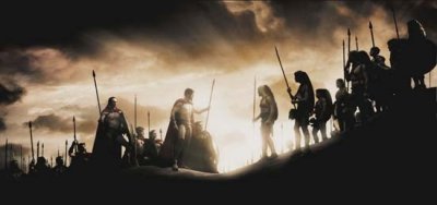A görög-perzsa háborúban a görögök Marathon mellett i. e. 490-ben megállították az ellenséget. Tíz évvel később Xerxes vezeti az újabb perzsa támadást. A poliszok Spárta, Athén és Korinthosz vezetésével szövetkeznek. Az első összecsapásra a Thermopülai-szorosnál kerül sor, amelyet Leonidas spártai király véd a néhány ezer fős seregével. Amikor a perzsák a hátukba kerülnek, elbocsátja a segédcsapatokat és háromszáz katonájával az utolsó leheletéig harcol. Önfeláldozásuk nem volt hiábavaló, időt adott a görög seregek egyesüléséhez. Frank Miller képregénye alapján.