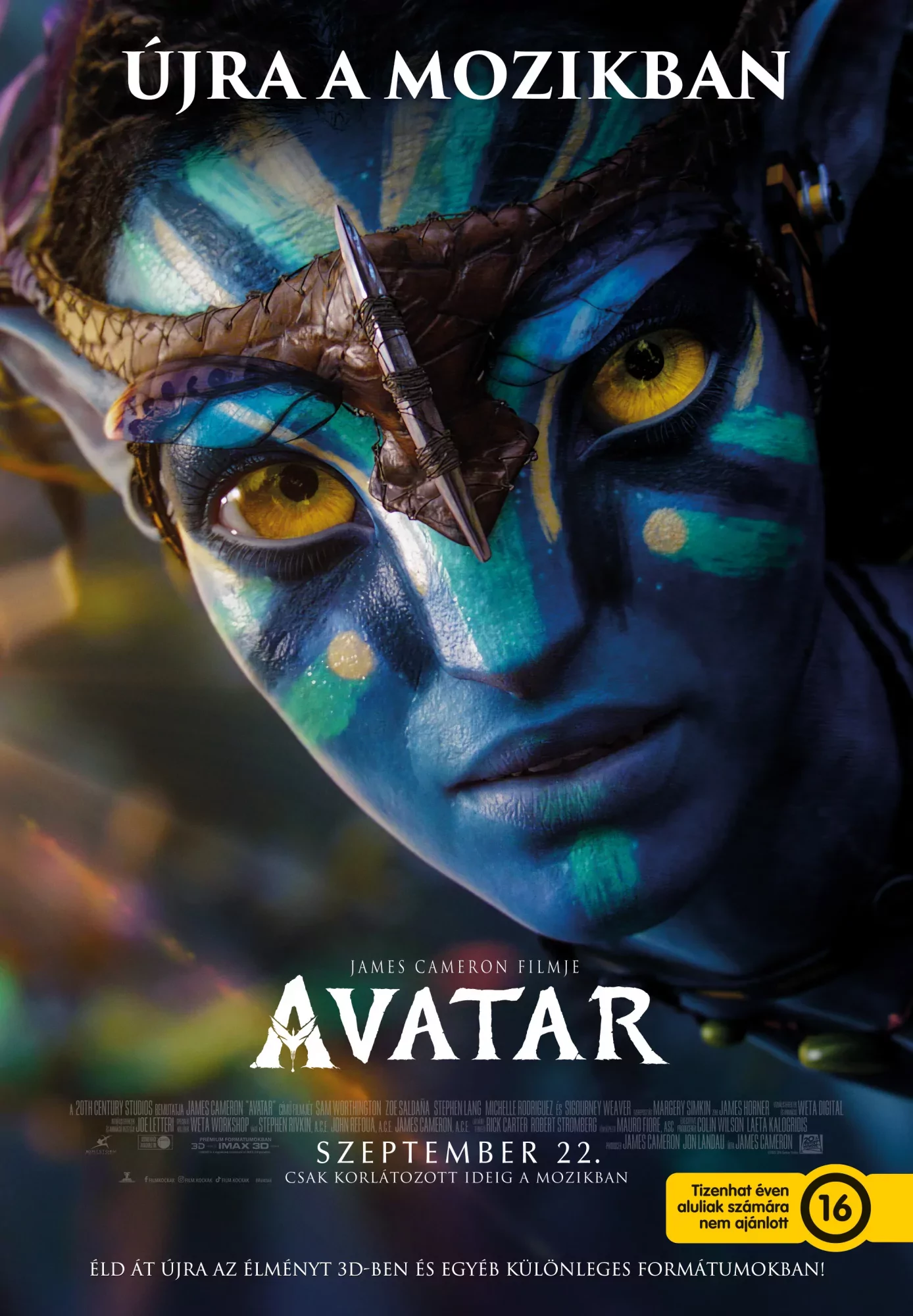 Ismét a mozikban James Cameron 2009-es, Oscar®-díjas filmeposza, ami minden idők legsikeresebb filmjévé vált. A nézők így újra lehetőséget kapnak arra, hogy 3D-ben és más speciális formátumok segítségével elrepítsék magukat a távoli Pandora bolygóra, a 2154. évbe.Az Oscar®-díjas James Cameron által írt és rendezett produkciót kilenc Oscar®-díjra jelölték 2010-ben, köztük a legjobb film és a legjobb rendező kategóriákban, s hármat meg is nyert: a legjobb fényképezésért, a legjobb látványtervezését és a legjobb vizuális effektusokért járót. A magyarországi mozikban tíz héten vezette a toplistát és végül több mint 1,2 millió jegy kelt el rá.