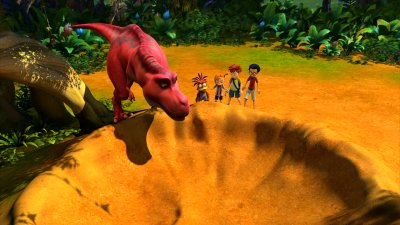 Három jó barát a játék hevében aktivál egy időgépet, ami visszaröpíti őket a dinoszauruszok korába. A tojás formájú időkapszulából kilépve egy T-Rex-szel találják szembe magukat. Az őslény megvan róla győződve, hogy a három gyerek az ő kicsinye, ezért mindent elkövet, hogy megvédje őket a rájuk leselkedő többi dínótól.