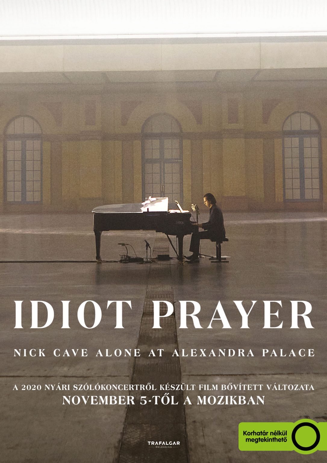 Az Idiot Prayer – Nick Cave Alone at Alexandra Palace című koncertfilmben Nick Cave saját szerzeményeit adja elő szólóban, zongorán kísérve. Különböző korszakokból származó dalok csendülnek fel, a legkorábbi Bad Seeds és Grinderman lemezektől egészen a legfrissebb Nick Cave & the Bad Seeds album, a Ghosteen c. lemez anyagáig, köztük olyan népszerű szerzeményekkel, mint az Into My Arms, The Mercy Seat, Higgs Boson Blues vagy a Girl In Amber.A 2020 júniusában, a karantén idején online nézhető koncertként rögzített felvétel eredetileg csak egyetlen alkalommal volt megtekinthető egy internetes közvetítés során, ám most egy kibővített moziváltozatban világszerte láthatják a rajongók, méghozzá négy új, most először hallható dallal együtt. Az Idiot Prayer sajátos hangulata azokat a bezártsággal, elszigeteltséggel és bizonytalansággal teli hónapokat tükrözi, amikor több hónapnyi karantén után lassanként újraindult az élet az Egyesült Királyságban.Az előadást a többszörös díjnyertes operatőr, Robbie Ryan (A kedvenc, Házassági történet, American Honey) vette filmre az Alexandra palota díszes Nyugati előadótermében. A filmet Nick Emerson (Lady Macbeth, Emma, Greta) vágta.