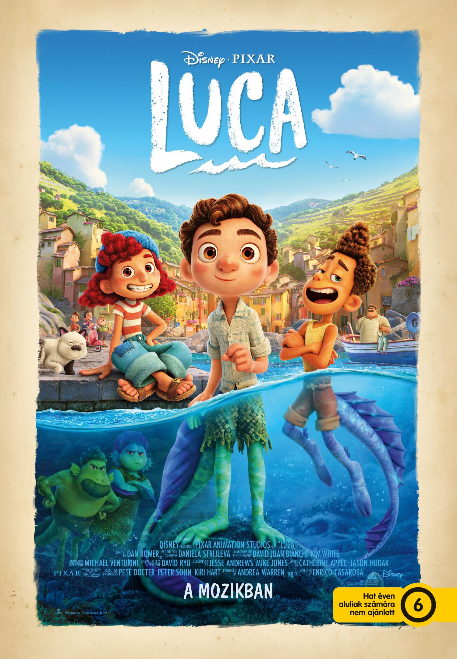 A gyönyörű olaszországi tengerparti településen játszódó Luca hőse egy kisfiú, aki feledhetetlen, fagylalttal, tésztával és végeláthatatlan robogózásokkal teli nyarat él át. Lucával együtt részese a kalandoknak újdonsült barátja is, ám a sok mókázást beárnyékolja egy súlyos titok: mindketten tengeri szörnyek a víz alatti világból. A Disney és a Pixar új filmje 2021 nyarán a mozikban!