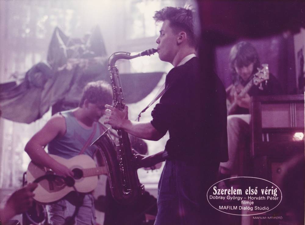 Az ismert történet főhősei Fügedi Ferenc, azaz Füge és Ágota, a szegedi iparművészeti középiskola érettségire készülő diákjai. Füge elvált szülők gyereke, festőnek készül és szaxofonozik a kollégium zenekarában. Ágota egyszer talán majd régész lesz, addig is szigorú nagymamája és habókos rendőr nagybátyja rendezi az életét. Füge látszólag mindenütt otthon van, valójában azonban ugyanolyan felületes kapcsolat fűzi a szüleihez, mint a haverjaihoz vagy a szaxofonjához. Egy nap beleszeret lesz Ágotába, és ez megváltoztatja az életét, ám amikor feltűnik a lány régi udvarlója, Füge úgy érzi, vége a világnak. Kétségbeesésében öngyilkosságot kísérel meg, majd elutazik apjához, hogy a tanácsát kérje. Végül egymásra találnak Ágotával, a lány teherbe esik, ám el akarja vetetni a gyermeket. Füge, aki általában csak sodródik az eseményekkel, előbb-utóbb kénytelen felnőttekhez méltó döntéseket hozni és felelősséget vállalni...A „magyar Házibuli” szélsőséges érzelmeket és tabutémákat megörökítő tini-melodráma a vagány, durcásképű szaxofonos fiú és egy ártatlan szőke lány első, esetlen és megható szerelmi kapcsolatáról. Dobray György és Horváth Péter amatőr főszereplőkkel forgatott kultfilmjét több, mint egymillió néző látta a nyolcvanas évek közepén, a film sikere még az alkotókat is meglepte. A Szerelem első vérig valóban meg tudta szólítani a fiatalokat, a tinik úgy érezték, végre valaki nekik, róluk beszél. A film fülbemászó dallamait Dés László szerezte, a filmben felcsendülő dalokat egy egész generáció dúdolta. Főcímdalát Demjén Ferenc énekelte és a dal heteken keresztül vezette a toplistát, az év slágere lett. Később két további folytatása is készült, ám egyik sem lett olyan sikeres, mint a kultikussá vált első rész. A film teljes körű restaurálása a Nemzeti Filmintézet Filmarchívum és Filmlabor igazgatóságainak együttműködésében valósult meg.